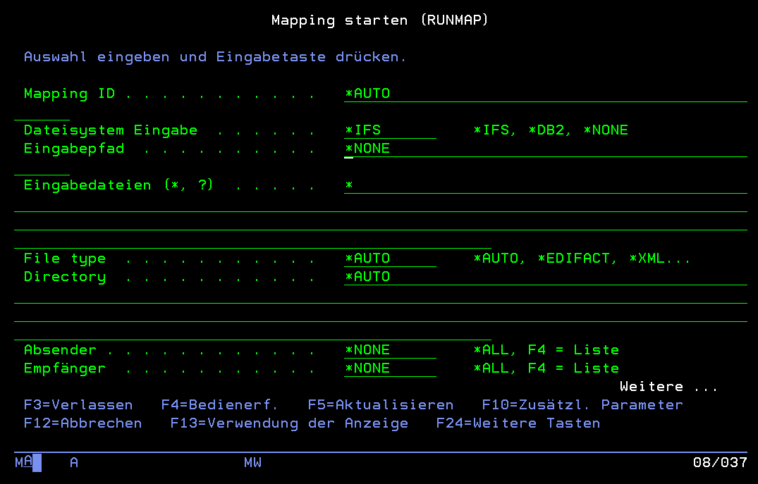| ORIGINATOR | Sofern das Mapping die Auswahl eines Absenders unterstützt, wird in diesem Parameter der zu selektierende Absender angegeben. Der Standard lautet: *NONE | ||||||||||||||
