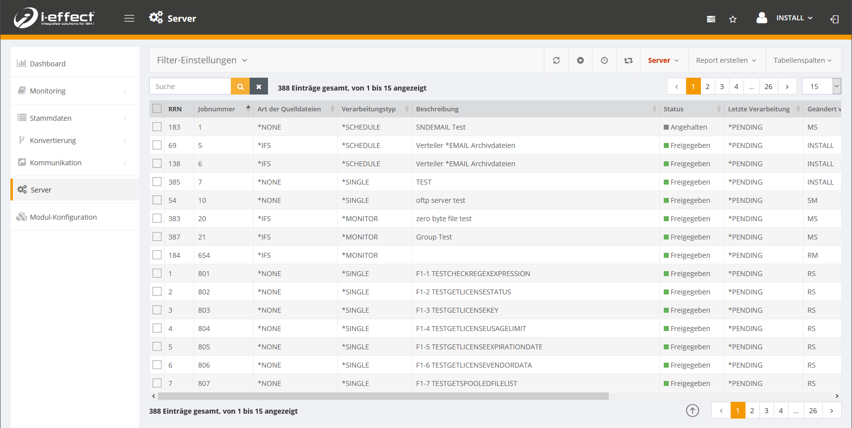 Hier wird auch beschrieben wie Sie den i-effect Server starten und beenden, und wie Sie Servereinträge freigeben und anhalten.