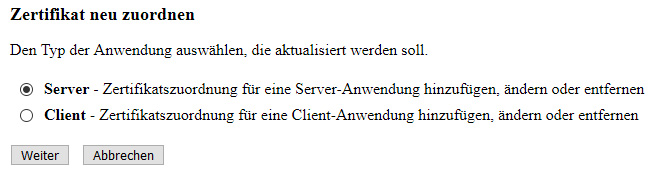 Als letztes weisen Sie unter "Anwendungen verwalten" -> "Zertifikat neu zuordnen" der vorher eingerichteten "Serveranwendungs-ID" Ihr Zertifikate zu.