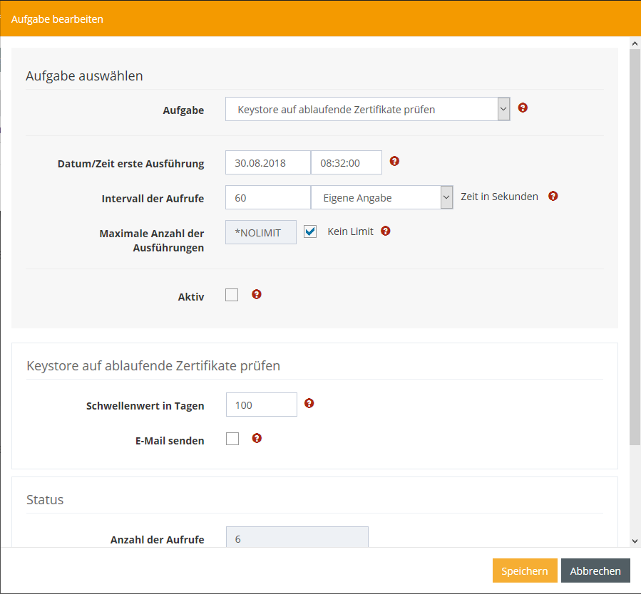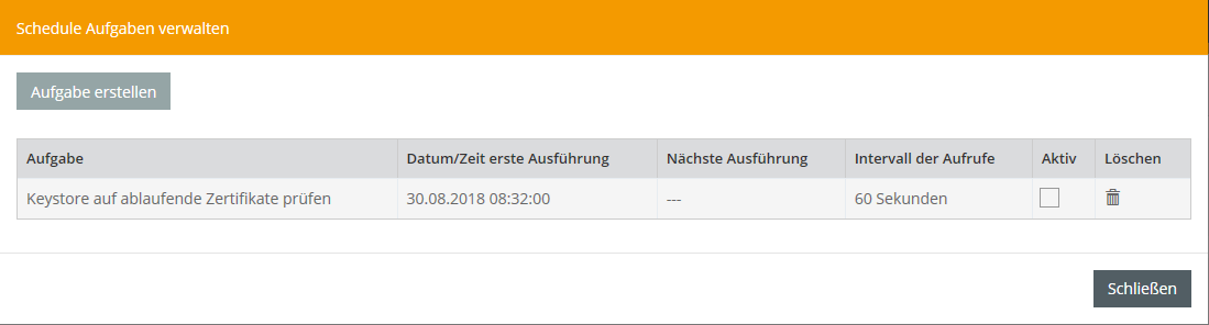 Zusätzlich kann bei den Keystore Aufgaben ein Schwellenwert in Tagen Konfiguriert werden, und ob der Versand einer E-Mail gewünscht wird.