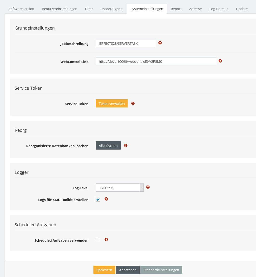 An allen Stellen in denen Jobs in WebControl gestartet werden, verwendet das System die hier konfigurierte Jobbeschreibung.