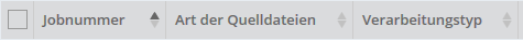 In der ersten Zeile der Tabelle stehen die Spaltennamen über die sich die Datensätze mit einem Klick sortieren lassen. Ein kleiner Pfeil nach dem Spaltennamen zeigt an, nach welcher Spalte sortiert wird und ob die Sortierung auf- oder absteigend ist.