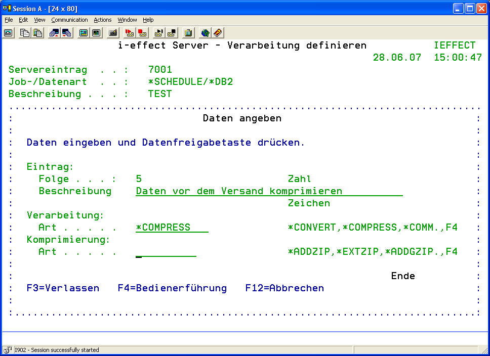 Wählen Sie in der Anzeige „Servereintrag zur Verarbeitungstabelle hinzufügen" die Verarbeitungsart *COMPRESS aus.