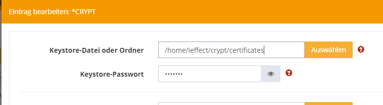 Werden aus dem aktuell verwendeten i-effect .p12 Keystore alle Einträge 1:1 mit gleichen Namen exportiert und in das definierte Verzeichnis gespeichert,