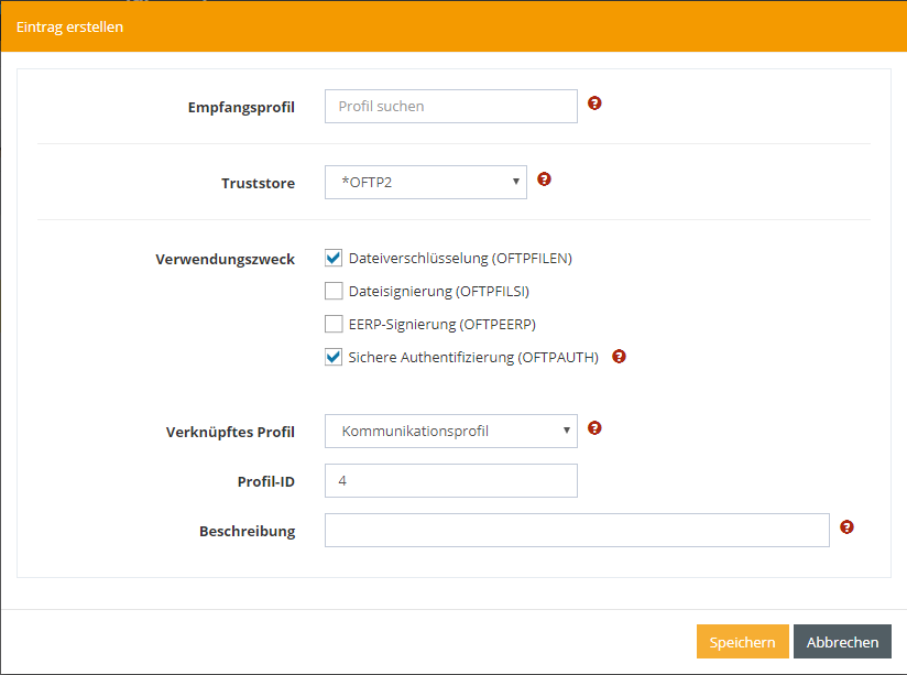 In diesem Tutorial möchte Ihr Partner sein Zertifikat über OFTP2 an Sie senden. Hierzu ist es nötig Informationen zur Erkennung des Zertifikats zu hinterlegen.
