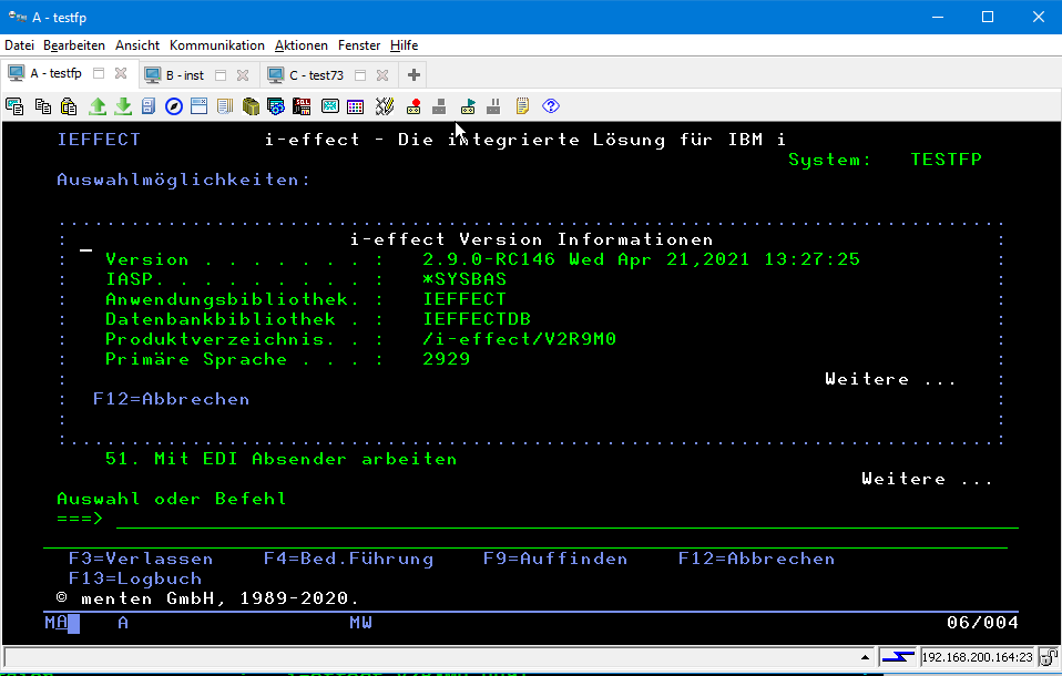 Calling the main menu of i-effect in a terminal session with