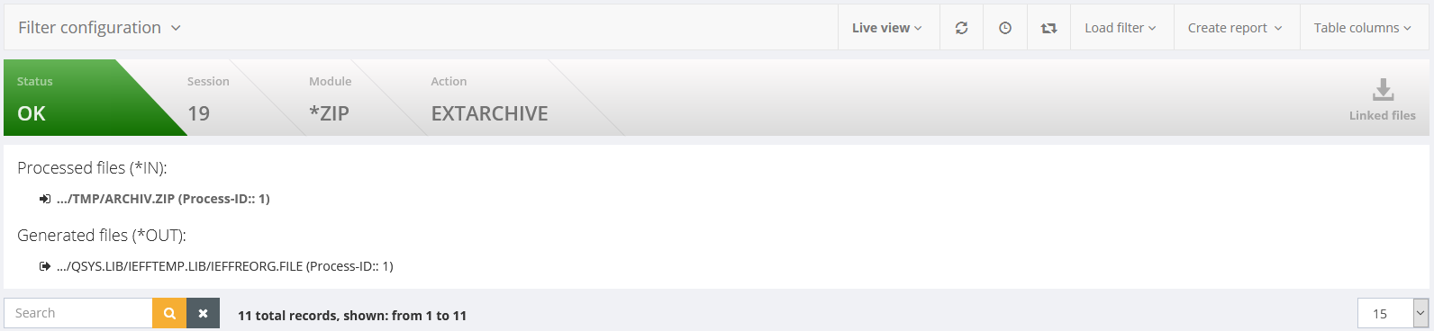 Files still available on the system are displayed in bold font and can be opened with one mouse click.