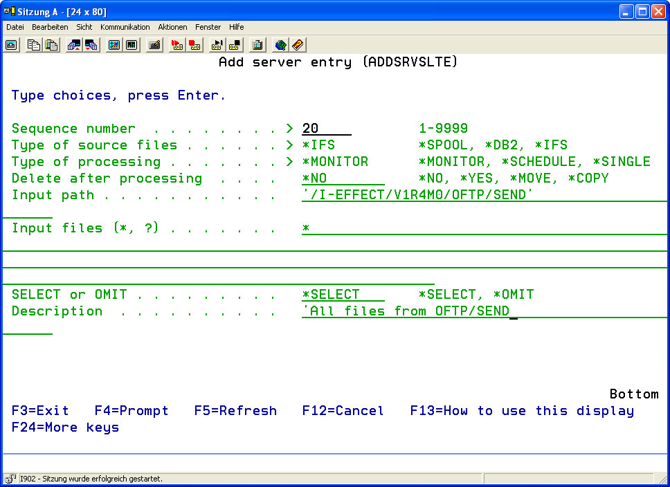 Enter the command ADDSRVSLTE or use function key F6 to add a new entry.