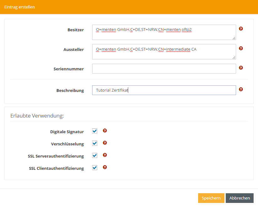 To enter for whom and what the certificate should be used, open the submenu: Edit Setup Parameters by right-clicking.
