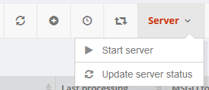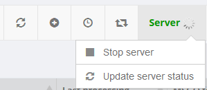 The status is automatically updated a few seconds after loading the page. If it has not been determined before, the font is black. The server can be started or stopped via the menu.