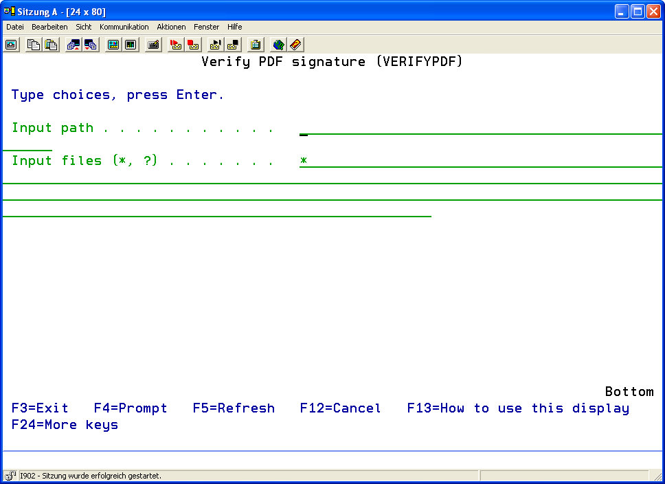 | Input Path (FRMPATH) | Determine the path in the IFS file system from which the PDF files should be taken in order to verify the digital signatures. | ||||