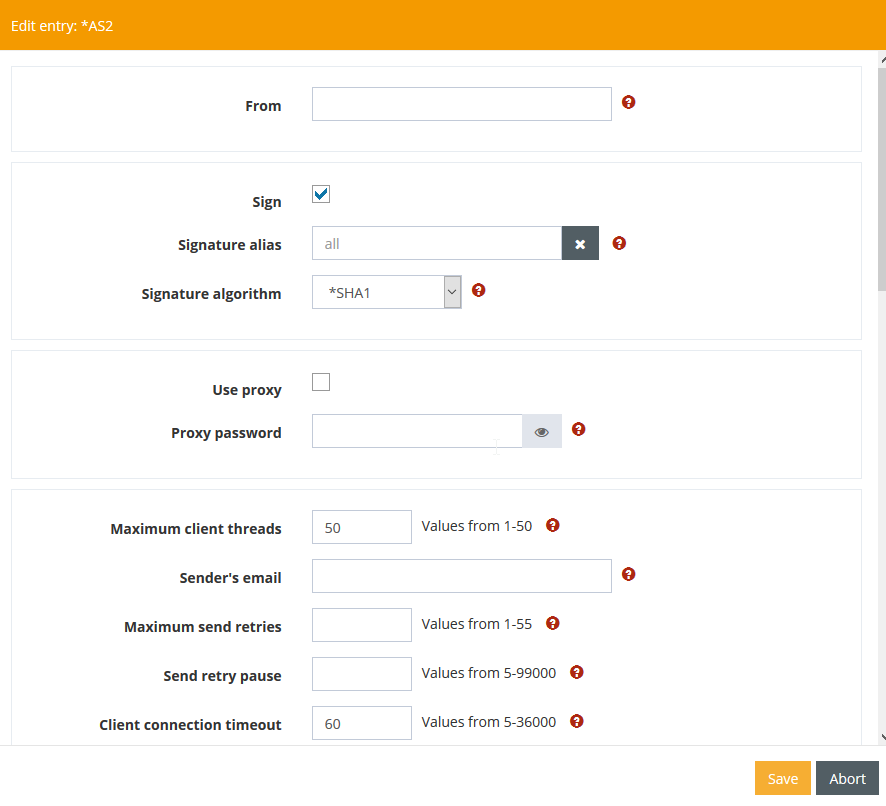 In order to be able to fully use the security mechanisms (encryption and signing) of AS2, it is necessary to maintain a keystore with its own key pair (private and public key) and the certificates of the partners. The AS2 module uses the CRYPT keystore. You can manage the certificates and key pairs using Webcontrol. Keystore-Manager