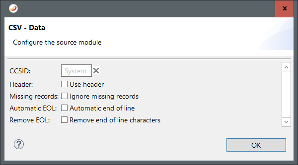 The following options are available for CSV as source: