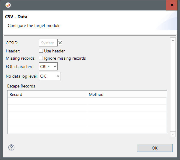 The following options are available for CSV as target: