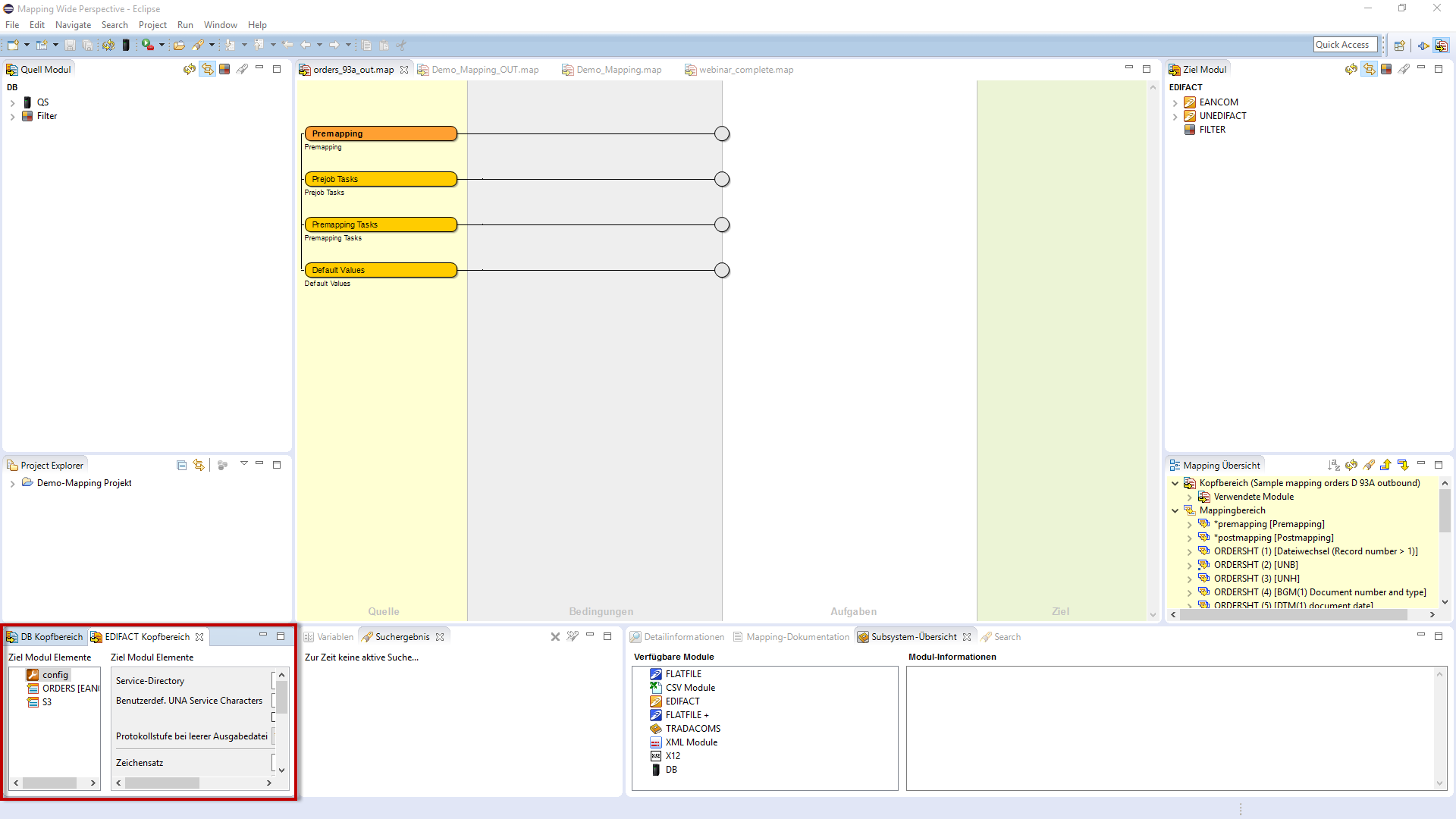 The source and target modules of mappings have different configuration options which will be explained to you in the following. You will find the header section of the source and target modules in the following location of MAPGUI: