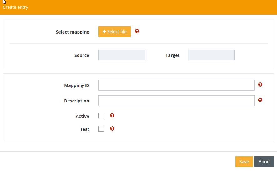 All mappings created and activated in the system are displayed here in a central administration interface. Mappings can be imported and exported from here. Renaming mapping files and mapping IDs is also supported.
