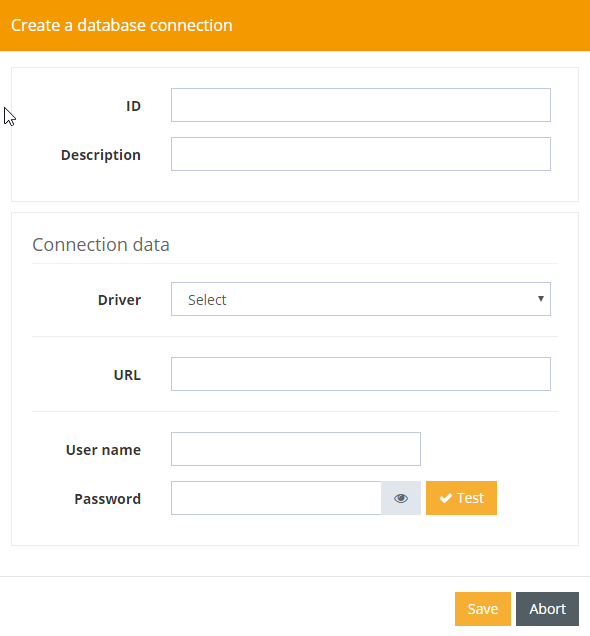 If there is no connection yet, a new database connection can be created using the dialog available here.