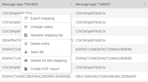 A function for exporting is available for passing on to other systems or for saving the existing mappings. It can be selected with the right mouse button.