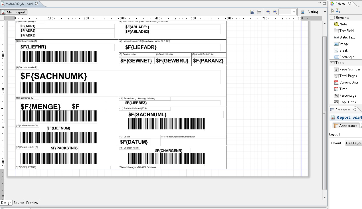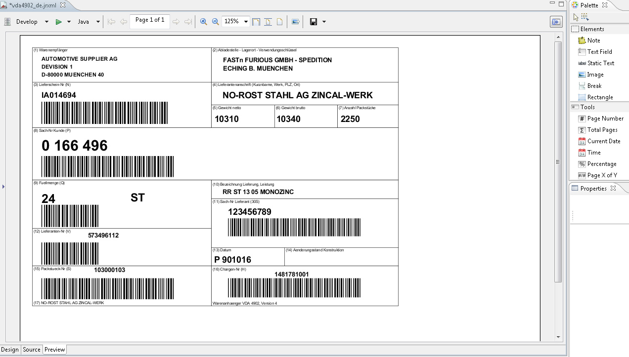 More complex reports, like like the in the delivery included example of a VDA4902 product trailer are created with the same principle.