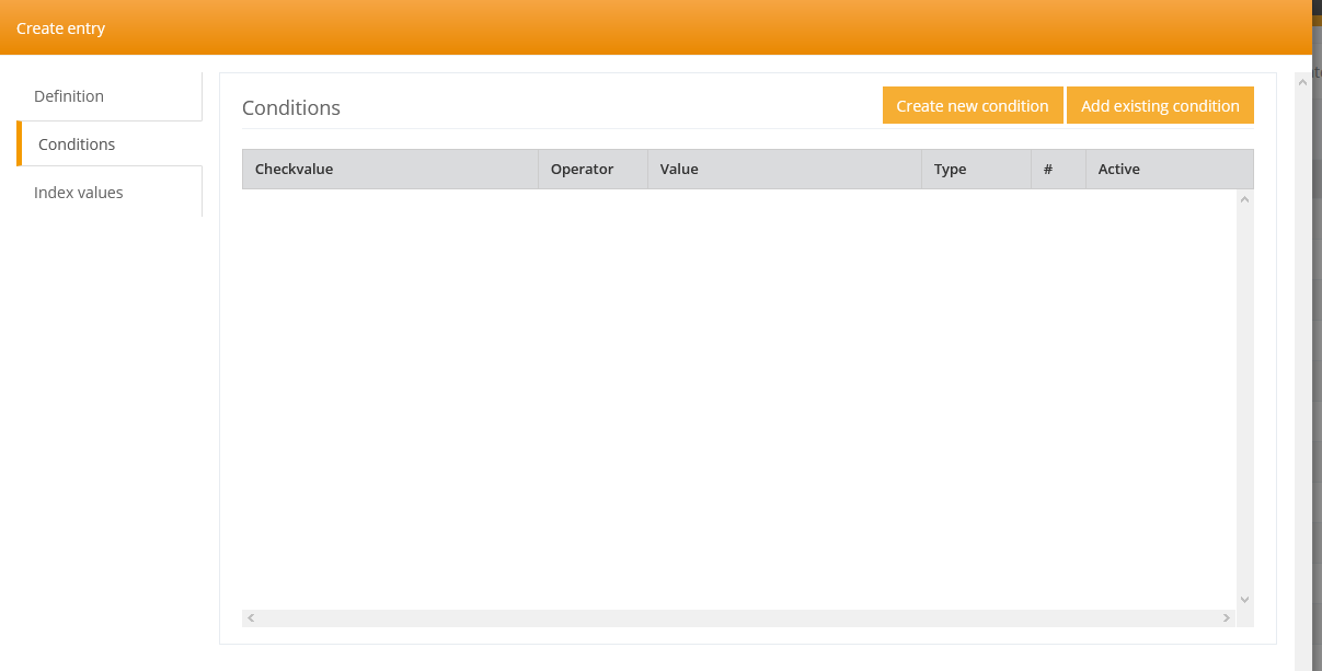 No conditions are yet assigned to a new definition. Conditions can be taken from the already existing conditions or newly created.