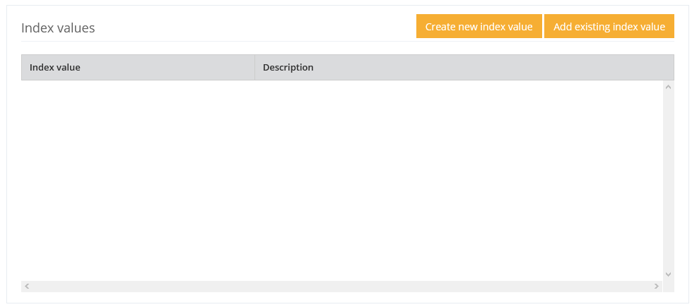 No index values are yet assigned to a new definition. Index values can be taken from the already existing index values or newly created.