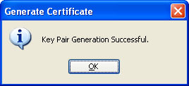 After successful generation of a key pair, a confirmation dialog window will appear. Click on "OK" to return to the main menu.