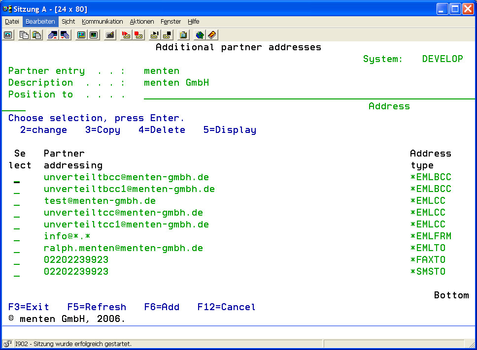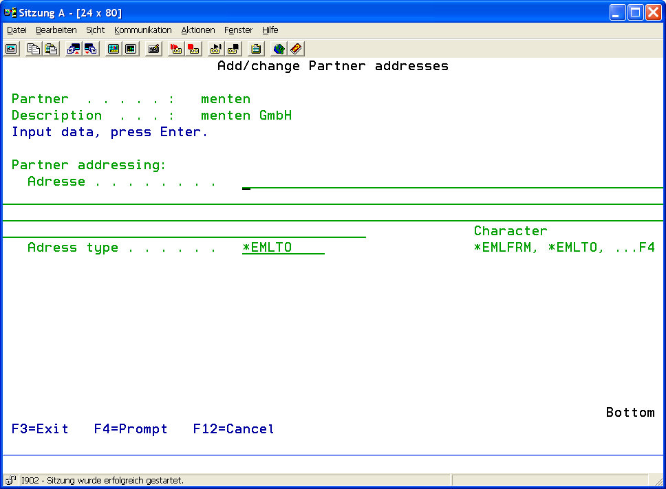 | Add (option F6) | To add a new address, use option F6 (function key 6). In the appearing program interface, choose an address name and define the type of address. |
