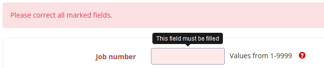 If individual fields are not filled correctly, a box with the error description is displayed above the form.