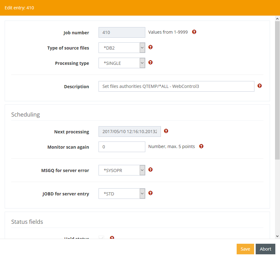 In some sections you find areas with information to the last access to the entry. Those areas are shown if you edit an available entry. When creating an entry they are faded out.