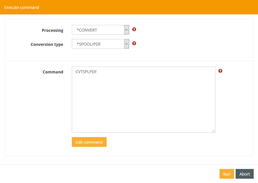 Via the dropdown "Processing" all Known Commands are offered for selection by application area. In addition, you can enter your own commands via the "Custom Command" option.