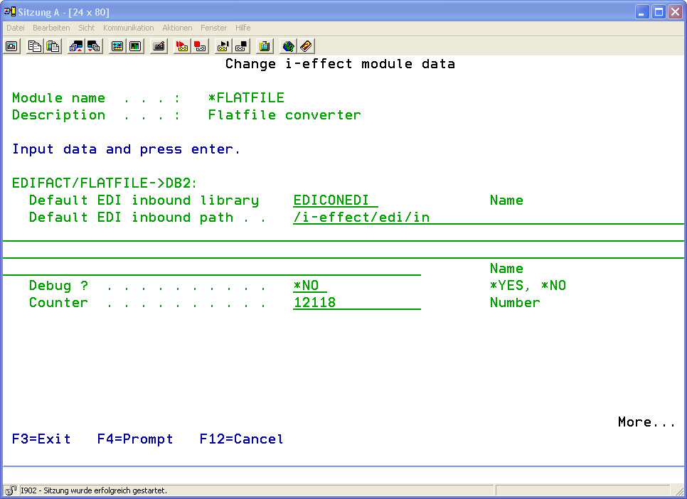 | Default EDI Inbound Library | See: "Additional Parameters of the *EDIFACT Module" |