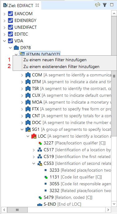 Filters can be created to retain the overview in the source and target modules. Filters are used to include and provide sections from the module tree view. Within the module overview there is a point which is used to manage filters. Filters are managed by modules and have a global character. Filters are visible for all who are connected to the RMI-server by *MAPGUI.