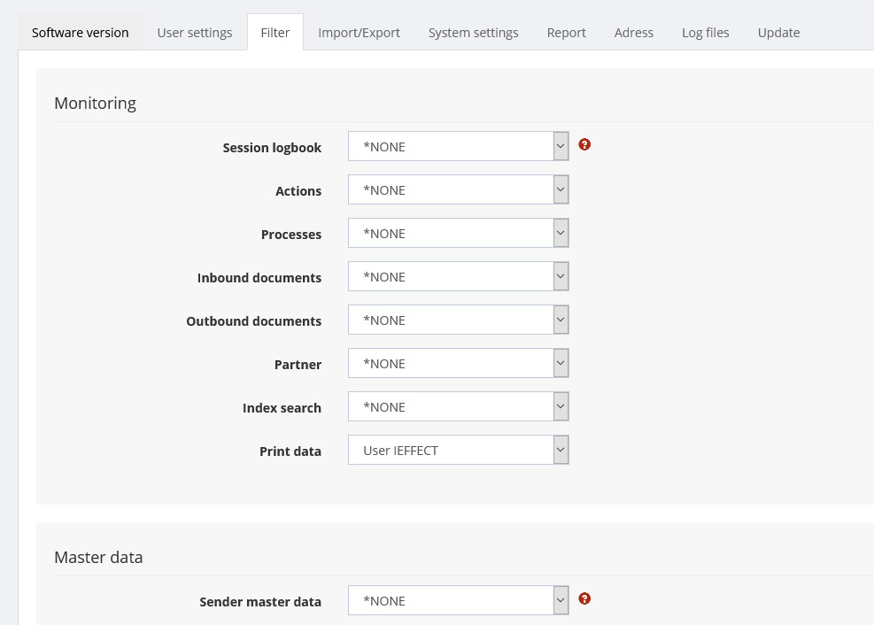 Here, filters can be selected that will be used as standard-setting when browsing a page. System-filters can be selected as well as individual filters.