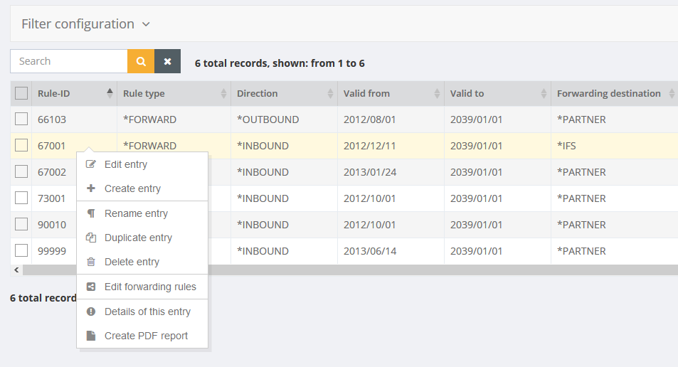 This table manages all transfers in i-effect with the associated rule settings.
