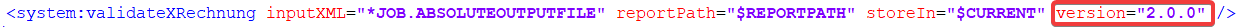 If the XInvoice mapping of XInvoice version 2.0.0 is to be used with i-effect version 2.9.0 or higher, a mapping adjustment must be made. The "version" parameter must be added to the "validateXInvoice" mapper task: