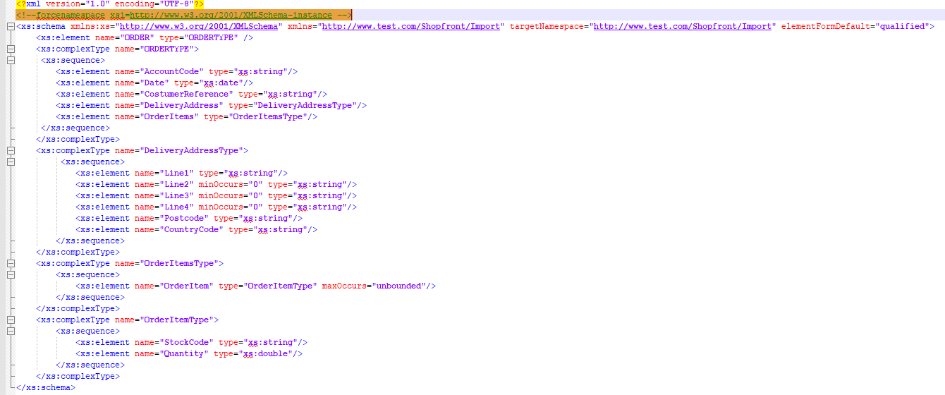 CODE<!--forcenamespace xsi=http://www.w3.org/2001/XMLSchema-instance -->