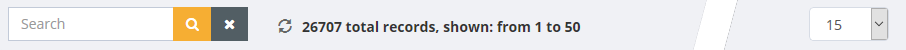 Between menu bar and table is the information line. It consists of an input field for searching, an indication for number of data records, a jump marker to the end of the page and a selection for the number of entries shown per page.