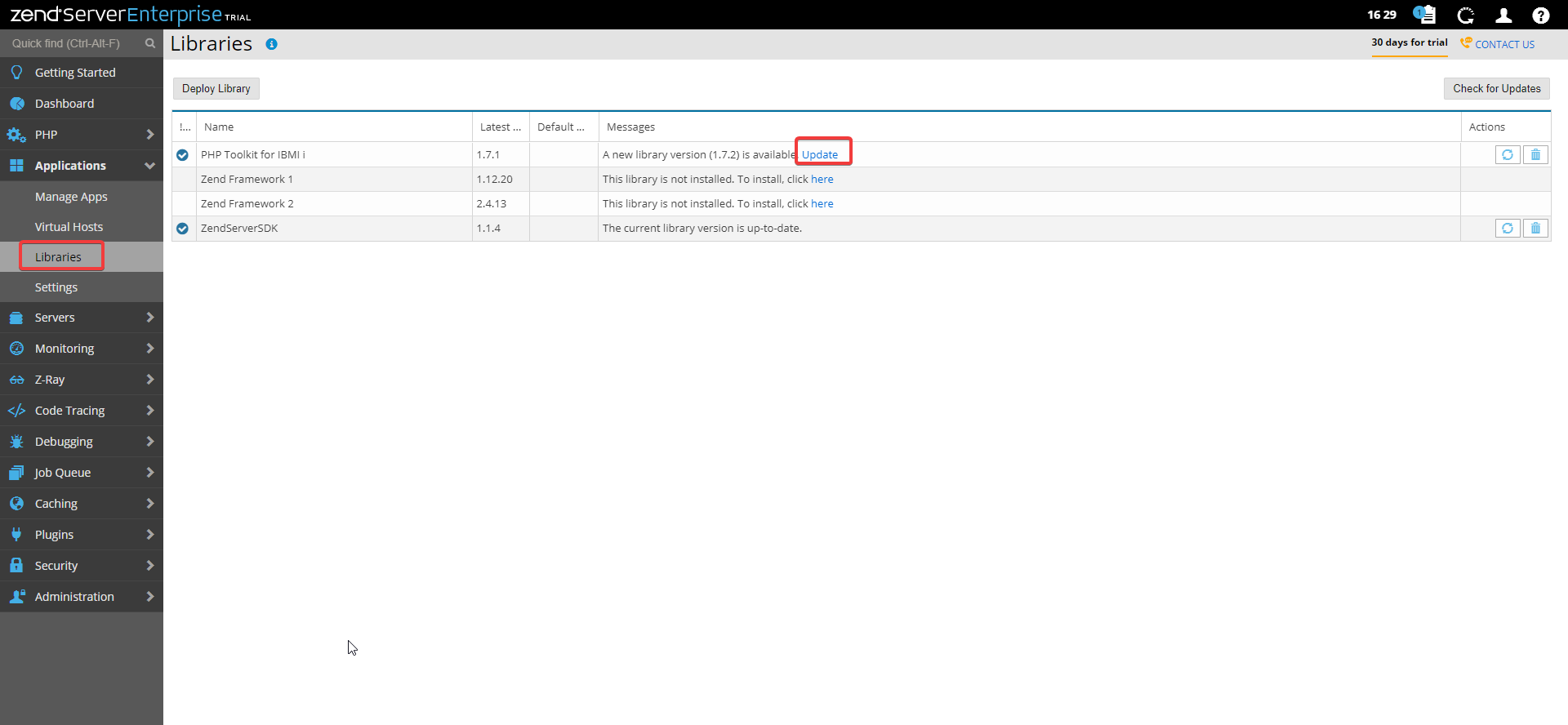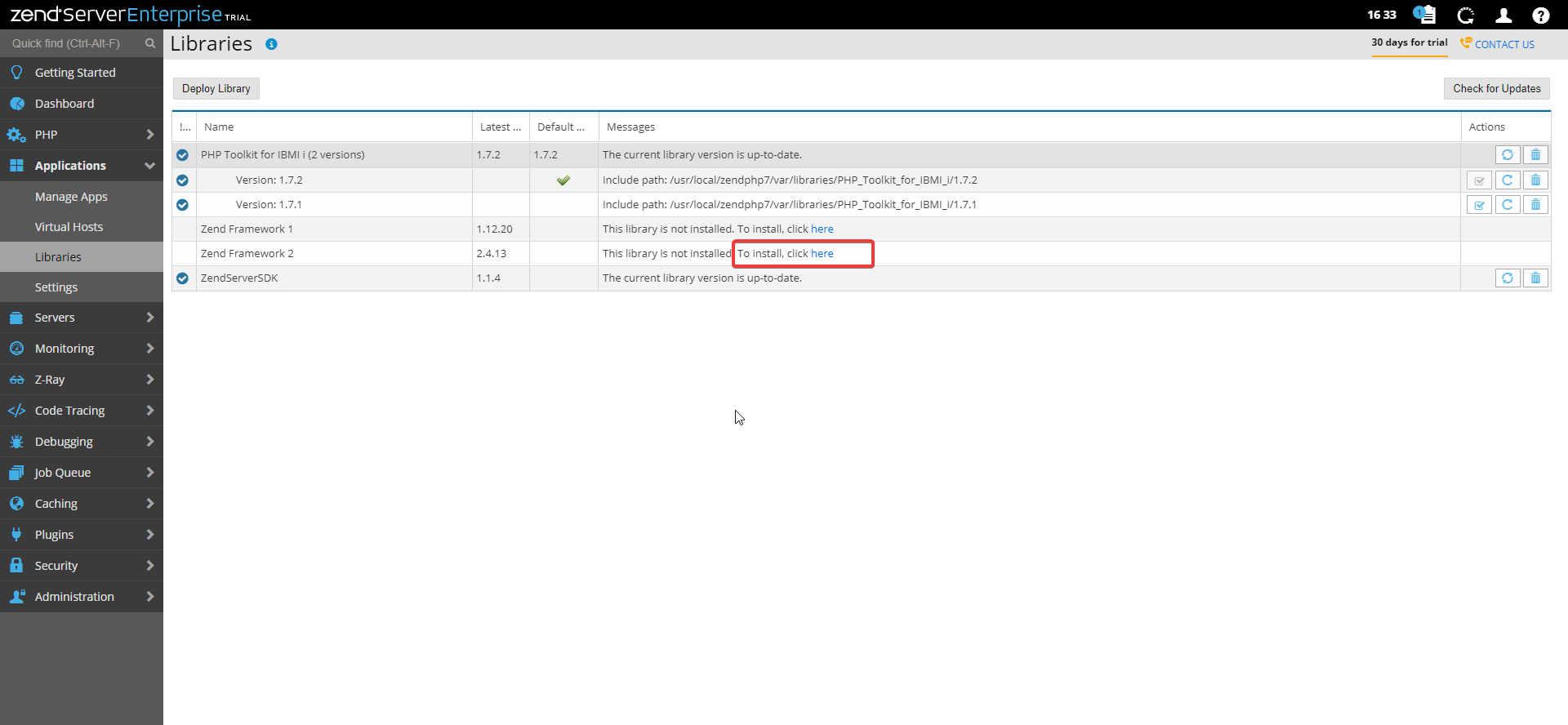 Furthermore, the version of the XML Toolkit for IBM i shipped with ZendServer contains several bugs. Therefore files must be replaced here if you are using version 1.7.x.