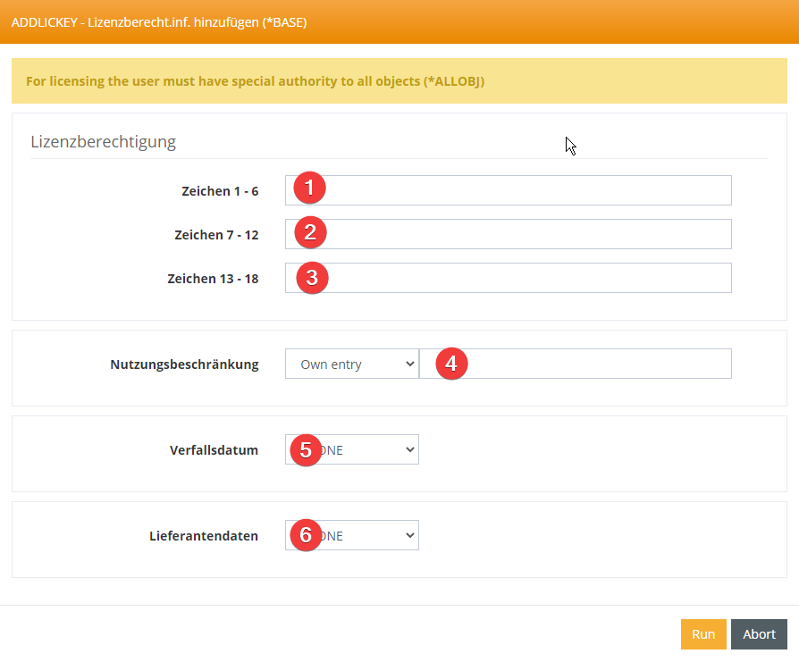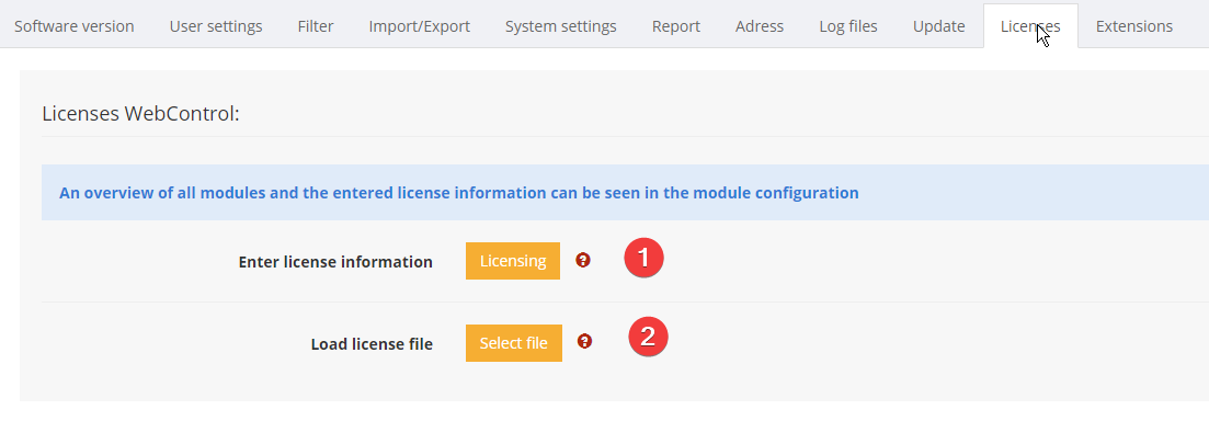 and then enter the license data for this module in the form.