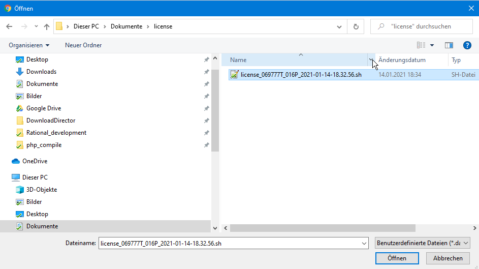 A license file ends in .dat or .sh and can have the following names, for example