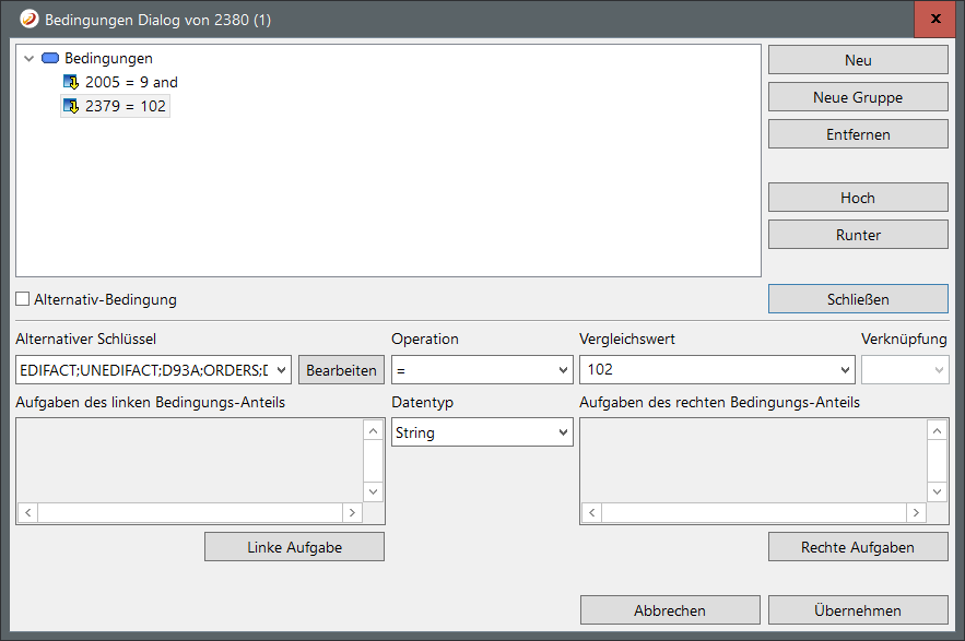 To guarantee correct conversion, we add a test to the condition by dragging the qualifier for date format over the existing condition field. Select New condition.