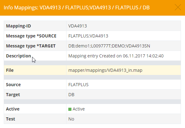 All mappings created and activated in the system are displayed here in a central administration interface. Mappings can be imported and exported from here. Renaming mapping files and mapping IDs is also supported.
