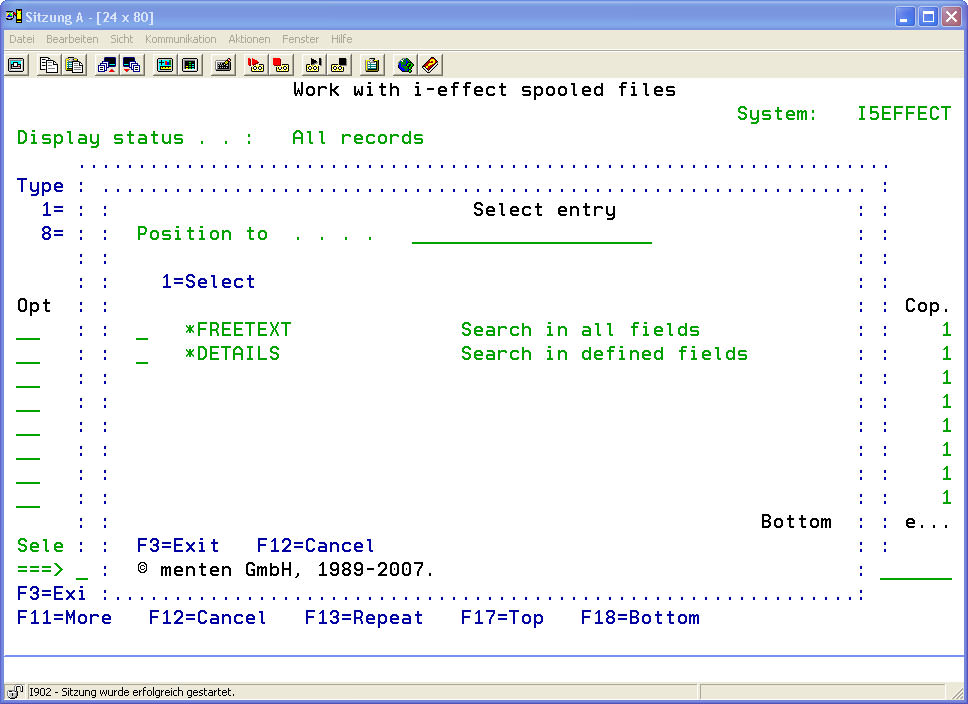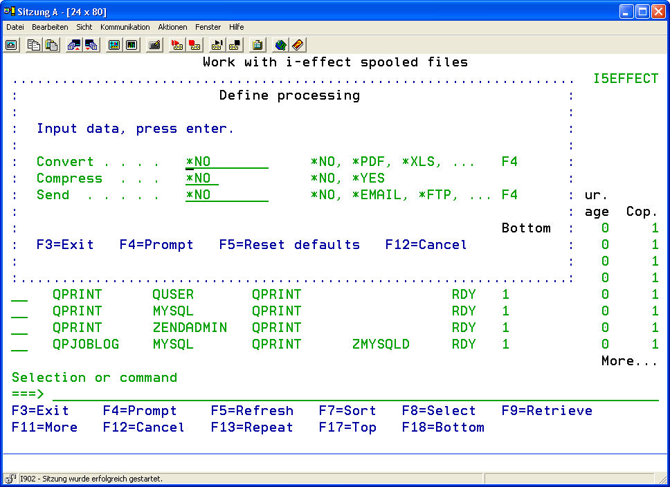 Enter the desired number in front of one or more spool entries. The chosen processing parameters will be used for all chosen spooled file entries