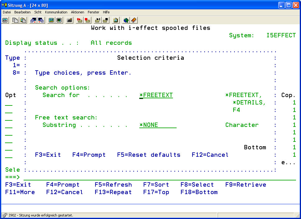 Spool entries can be searched according to predefined criteria by using the F8 key.