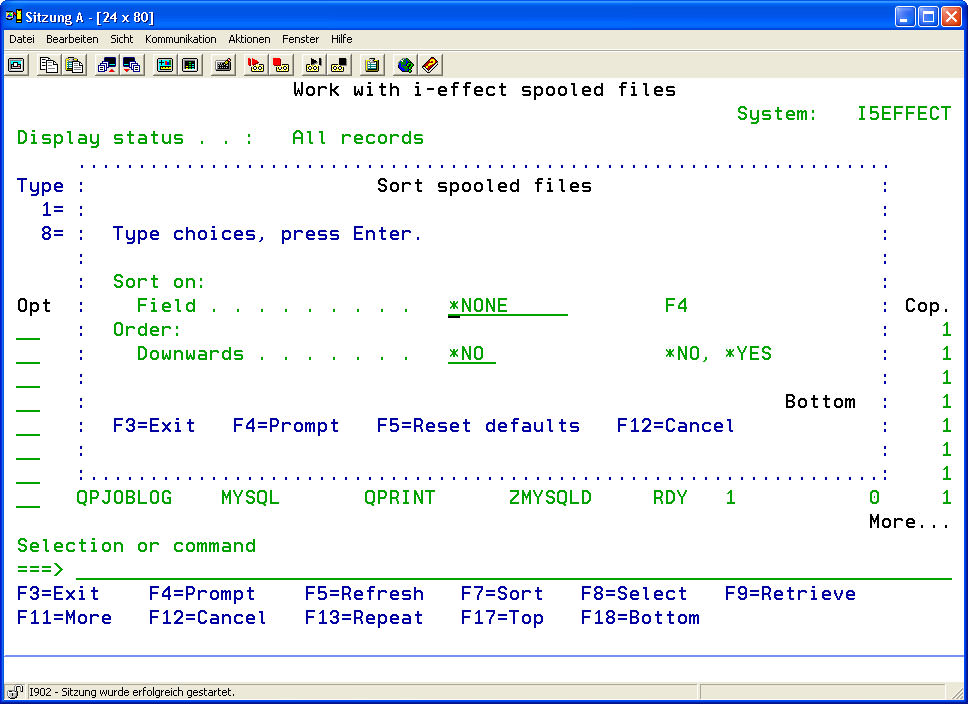 Using the interactive program pictures below the displayed spooled files can be sorted or selected according to their attributes.