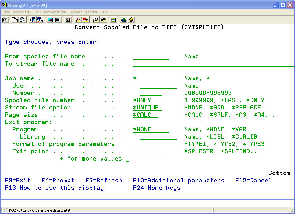 | EXITPGMKEY | The description of this parameter can be found under Menuepunkt 11: Spooldatei in PDF konvertieren CVTSPLPDF Teil 1 |