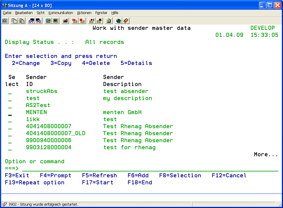 Originator master data is created by the program interface 51 (Work with EDI Sender Master Data). Select menu item 51 in the i-effect main menu.