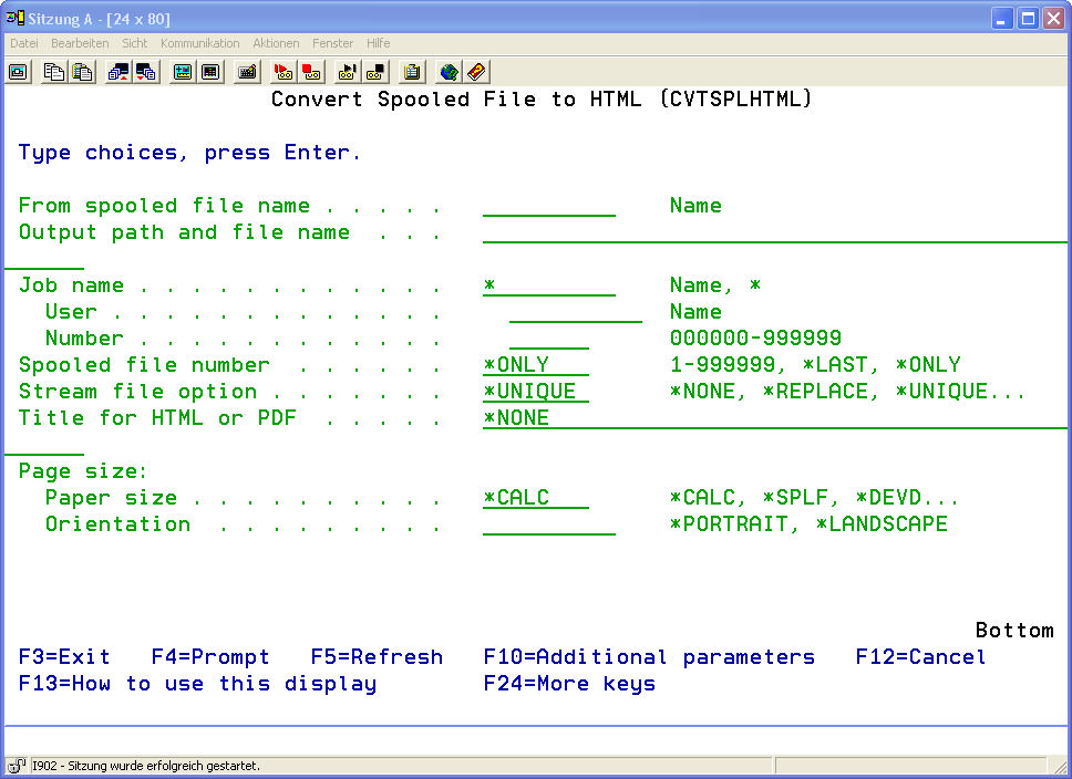 | CUSTOMPAGE | The description of this parameter can be found underMenu item 11: Convert spool file to PDF (CVTSPLPDF) Part 1 |