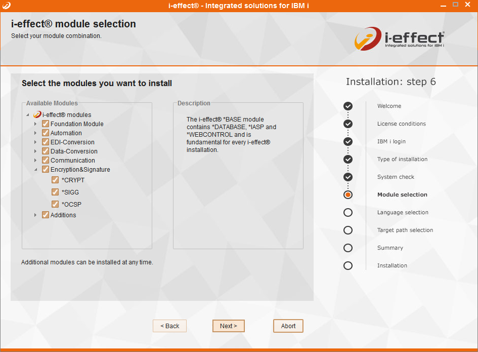 After the system check, you can select the modules that you want to install.