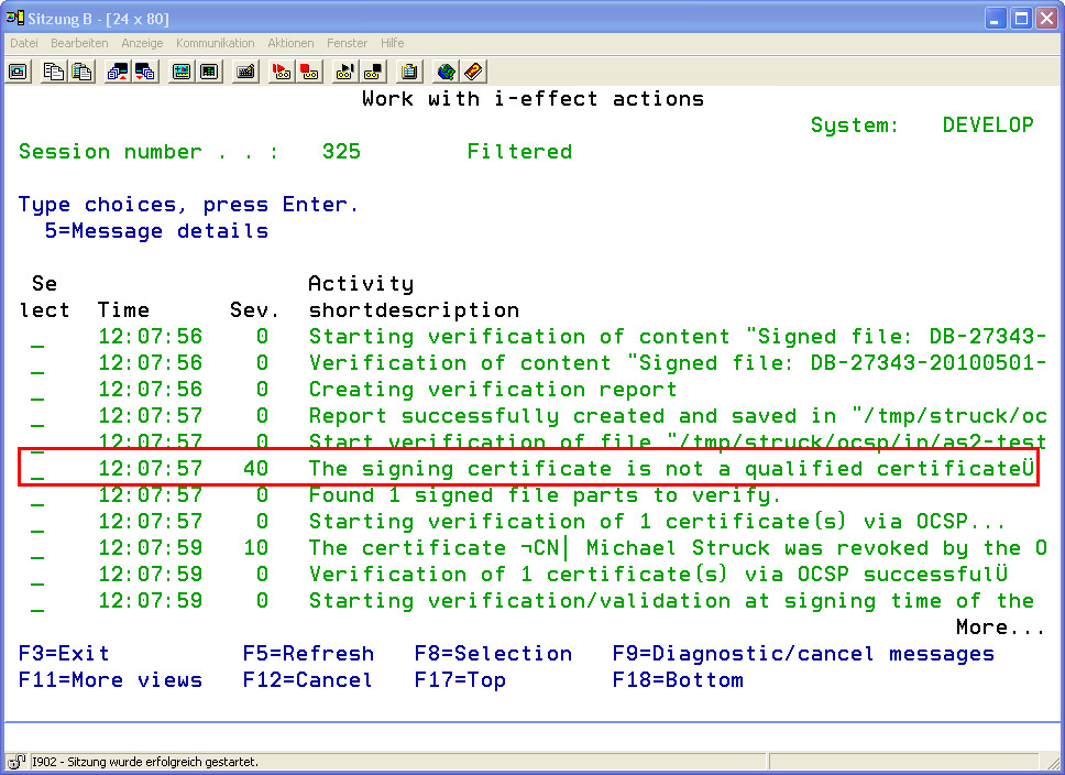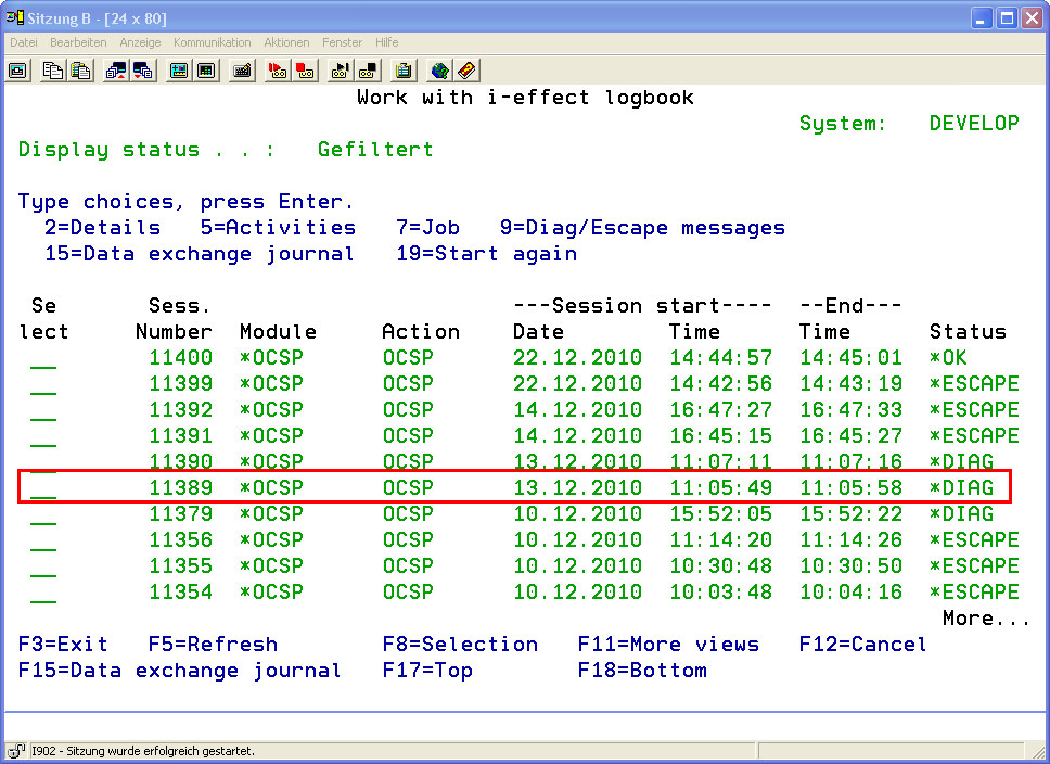 This logging is an expansion of the i-effect logbook and records further information that was generated by the i-effect *OCSP-Subsystem.